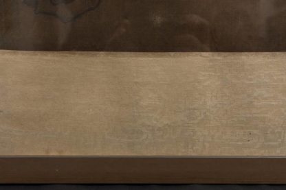 Japanisches Rollbild Japan 19. Jh. Meiji-Periode. Pfauendarstellung. Mischtechnik auf Seide, gerahmt von Brokatstoff. Größe ca. 76,5 x 39 cm, hinter Glas gerahmt ca. 98 x 57 cm. Brokatstoff teils geknickt.