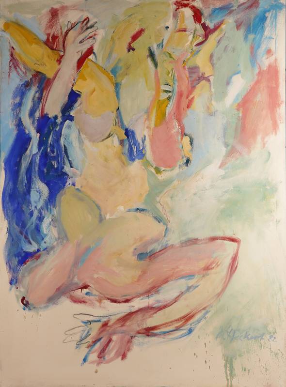Heckert, Michael 1950 Halle an der Saale. "Ekstase II". Öl auf Leinwand. Unten rechts signiert und datiert (19)82, verso betitelt. Größe ca. 188 x 140 cm. Rahmen ca. 190 x 142 cm. Kein Versand möglich, wir empfehlen gerne eine Spedition.