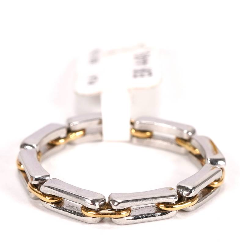 Kettenring Deutsch 20. Jh. Gelbgold 750 und Platin 950 je punziert. Ringgröße ca. 56 bzw. 18, Gewicht ca. 4 Gramm. Originales Verkaufsetikett mit Europreis 449.- anhängend.