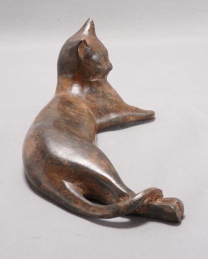 Chenet, Pierre Nordfranzösischer Künstler des späten 20. Jh. Liegende Katze. Bronze, patiniert. Unter dem Boden mit Künstlerstempel. Größe ca. 24 x 15 cm, Höhe ca. 10 cm, Gewicht ca. 1,4 kg.