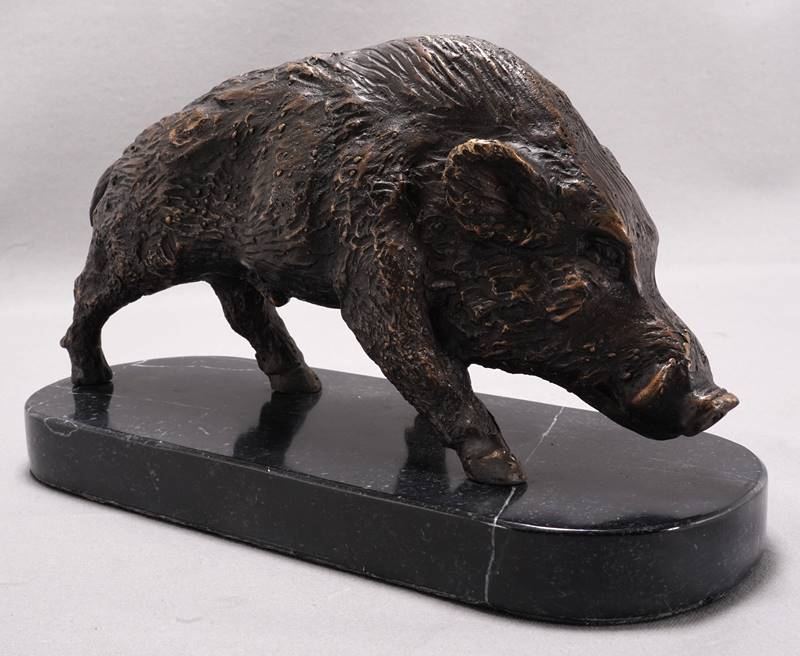 Bronzener Eber Wohl Frankreich 20. Jh. Bronze, patiniert, auf Marmorplinthe. Figur eines laufenden Ebers. Größe ca. 10 x 29 cm, Höhe ca. 15 cm, Gewicht ca. 4,2 kg. Zustand wie abgebildet.