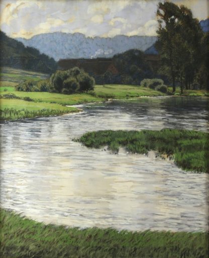 1880 Lot (Beersel) 7 Belgien - 1945 Dresden. Bachlauf mit Mittelgebirge. Mischtechnik. Unten links signiert. Größe ca. 58 x 47 cm, hinter Glas gerahmt ca. 63 x 52 cm.