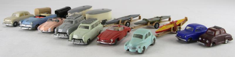 Diverse Fahrzeuge und Anhänger, u.a. V77, V59, V81, 2x V121, V12, Fiat 600, Opel Caravan, Renault 4 CV. Zustand wie abgebildet.