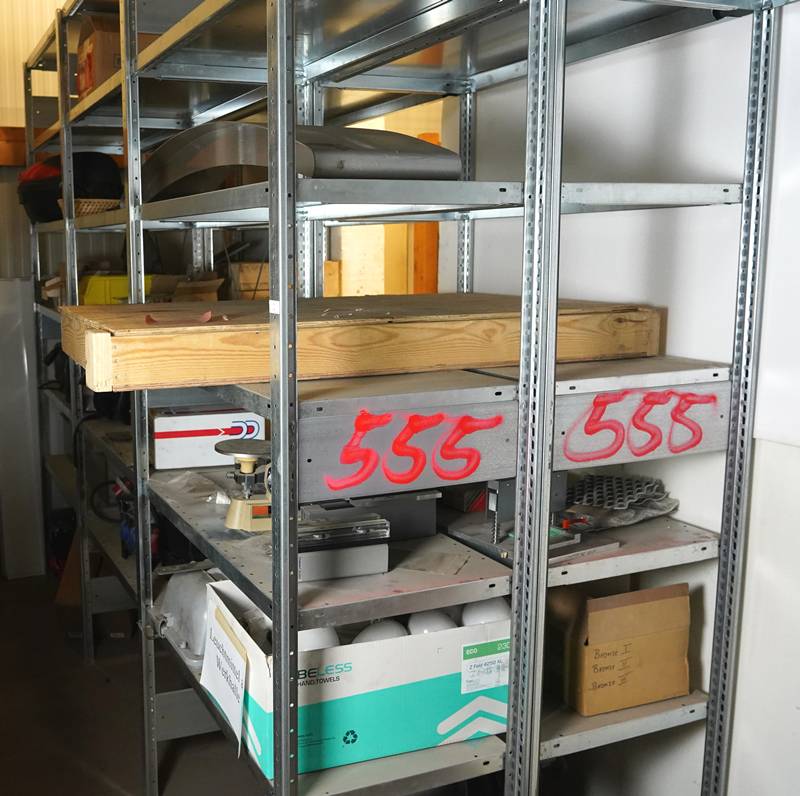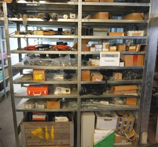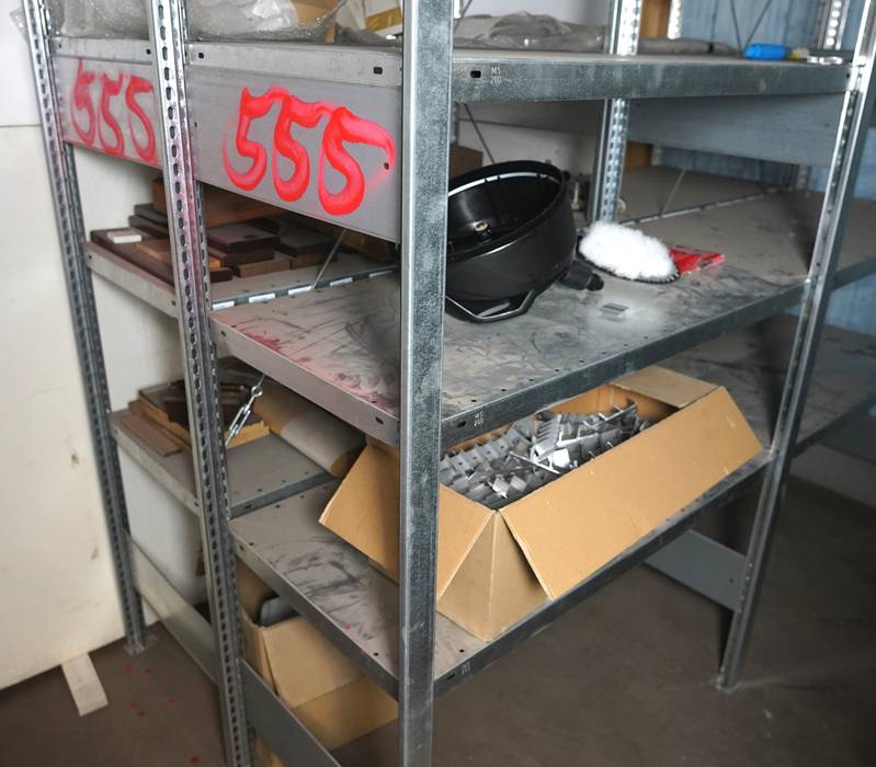 Regalinhalt auf fünf Elementen doppelt gestellt. Leuchtmittel, Verbrauchsmaterial etc.