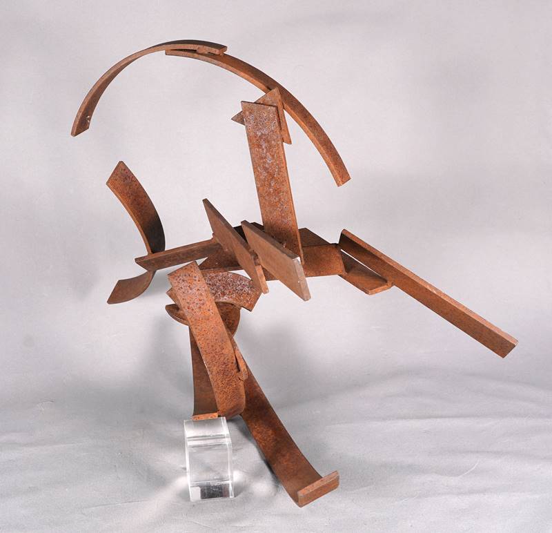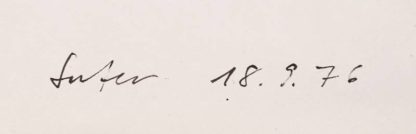1926 Aarau - 2009 Città della Pieve. "March 96". Eisenskultpur. Größe ca. 55 x 30 cm, Höhe ca. 60 cm. Gewicht ca. 6,8 kg. Erworben in der Ausstellung der Galerie Regio anlässlich des 70. Geburtstages des Künstlers 1996. Anbei zwei Federzeichnungen, jeweils unten rechts signiert und datiert 18.9.76 und 23.10.76. Größe ca. 25 x 25 cm.