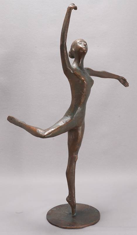 1909 Oberammergau - 2003. Tänzerin. Bronze, patiniert. Auf der Plinthe monogrammiert, nummertiert 4/15 und bezeichnet "Guss Strehle". Größe ca. 32 x 25 cm, Höhe ca. 54 cm. Gewicht ca. 3,1 kg. Guter Zustand wie abgebildet. Literatur: Hermann Schilcher, Vater und Sohn, S. 104.