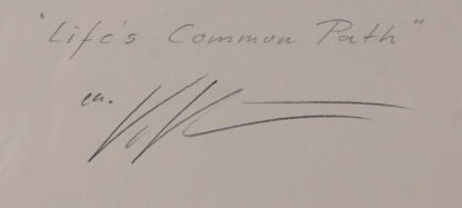 Kühn, Volker 1948 Neuenkirchen - 2023 Lilienthal. "Life's Common Path". Objektvitrine mit polychrom staffierten Figuren. Unten betitelt und signiert. Größe ca. 7,5 x 7 cm, hinter Glas und Passepartout gerahmt ca. 29 x 25,5 cm.