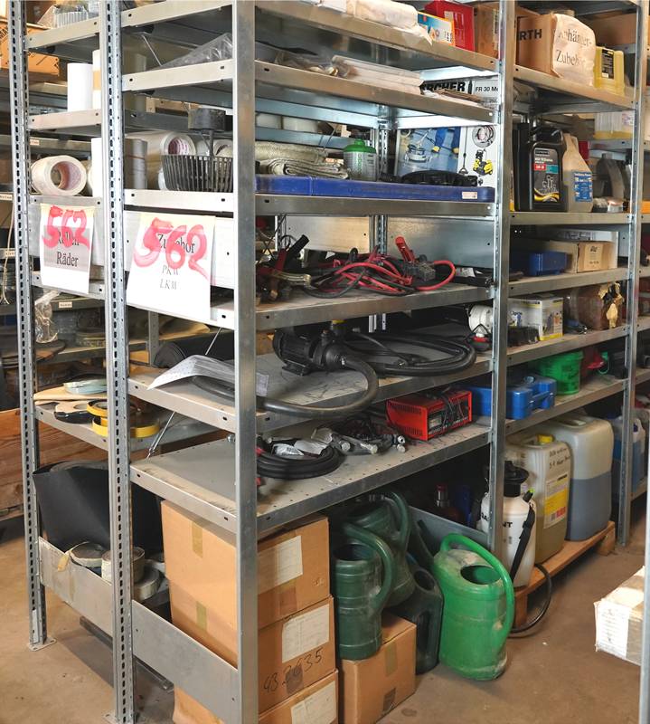 Regalinhalt in 2 x 3 Elementen diverser Inhalt. Verbrauchsmittel, Rollen, Kfz-Zubehör, Ladegerät etc.