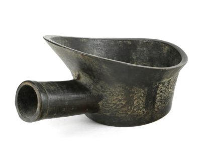 Kelle China um 1900. Bronze mit Reliefverzierungen. Durchmesser ca. 16 cm, Höhe ca. 9,5 cm. Gewicht ca. 1,5 kg.
