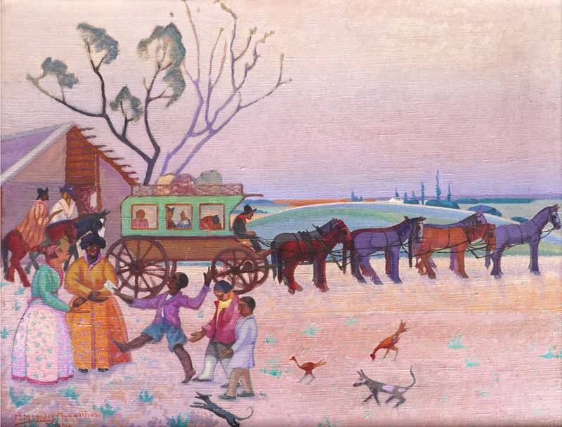 1885 Pontevedra - 1945 Buenos Aires. "La Diligencia". Öl auf Leinwand. Unten links signiert und datiert 1926. Größe ca. 71 x 90 cm, Rahmen ca. 80 x 100 cm. Literatur: "Die Kusnt des Uruguay", Argul, Barreiro, Ramus 1966.