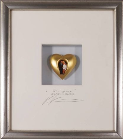 1948 Neuenkirchen - 2023 Lilienthal. "Traumpaar". Objektvitrine mit polychrom staffierten Figuren. Unten betitelt und signiert sowie gewidmet "ELKE und KLAUS". Größe ca. 7,5 x 7 cm, hinter Glas und Passepartout gerahmt ca. 29 x 25,5 cm.