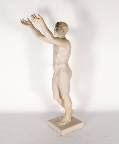 Museumsreplik der antiken Bronzefigur Betender Knabe in der Berliner Antikensammlung. Heller Guss. Größe ca. 26 x 35 cm, Höhe ca. 75 cm. Gewicht ca. 11 kg. Teils etwas verfärbt.