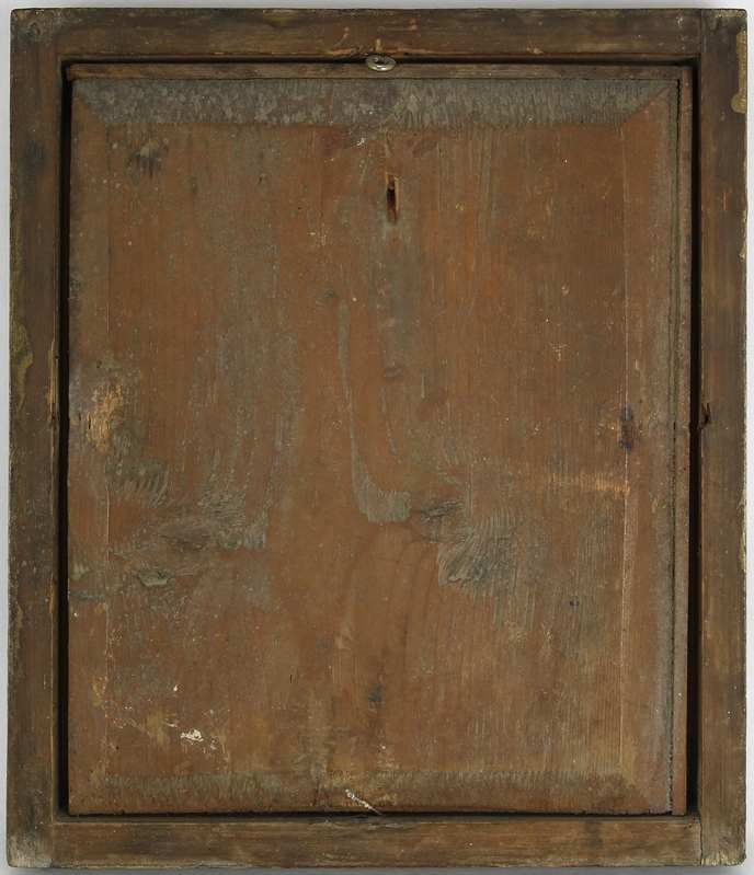 Ikone Russland 19. Jh. Heilige Barbara im Halbportrait. Tempera über Goldgrund auf Holztafel. Mit schlichtem, verglastem Holzrahmen. Größe ca. 24,5 x 20,5 cm, Rahmen ca. 27,5 x 24 cm.
