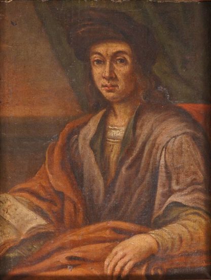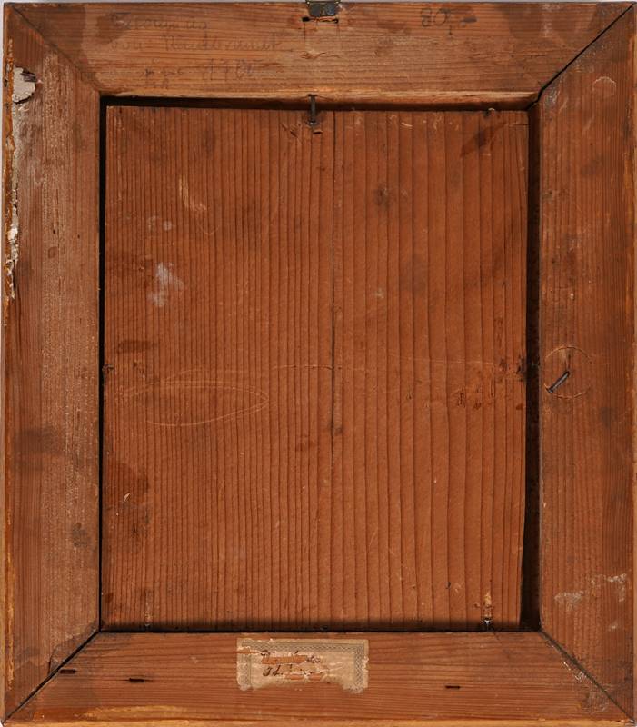Wohl Holland 18. Jh. Öl auf Holzplatte. Portrait eines sitzenden Edelmannes mit aufgeschlagenem Buch. Verso auf dem Rahmen bezeichnet Fälschung von Rembrandt um 1780. Größe ca. 19 x 14,5 cm, Rahmen ca. 26,5 x 22 cm. Altersbedingter Zustand.