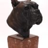 Tregor, Nicolai *1946 Zug. Büste eines Boxerhundes. Bronze auf Marmorsockel. Seitlich signiert und datiert 1977. Größe ca. 18 x 26 cm. Höhe ca. 40 cm. Gewicht ca. 11,9 kg.