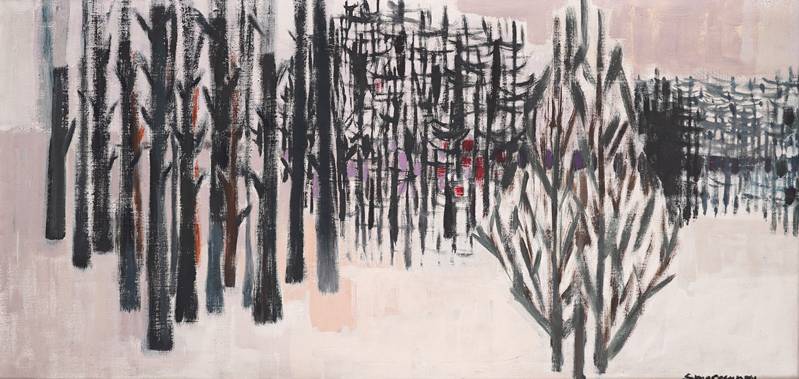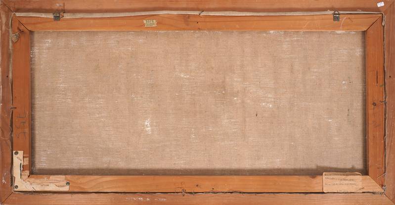 1926 Düsseldorf - 2021 Bodensee. "Winterlandschaft". Öl auf Leinwand. Unten rechts signiert, verso bezeichnet und betitelt. Größe ca. 47 x 99 cm, Rahmen ca. 56 x 107 cm. Schnorrenberg studierte bei Macketanz in Düsseldorf und gehörte später den Höri-Malern am Bodensee an.