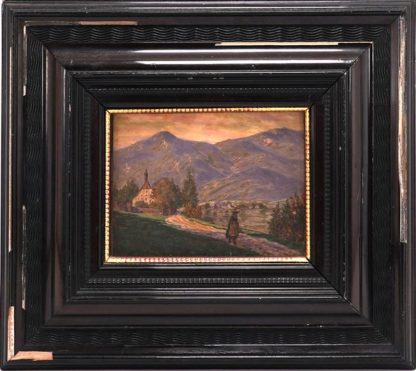 Klösterl am Walchensee Wohl Deutsch 19. Jh. Öl auf Holz. Hinter Glas gerahmt. Größe ca. 12 x 16 cm. Rahmen ca. 29 x 33,5 cm.