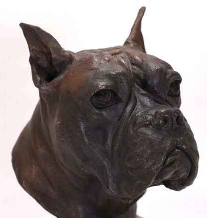 Tregor, Nicolai *1946 Zug. Büste eines Boxerhundes. Bronze auf Marmorsockel. Seitlich signiert und datiert 1977. Größe ca. 18 x 26 cm. Höhe ca. 40 cm. Gewicht ca. 11,9 kg.