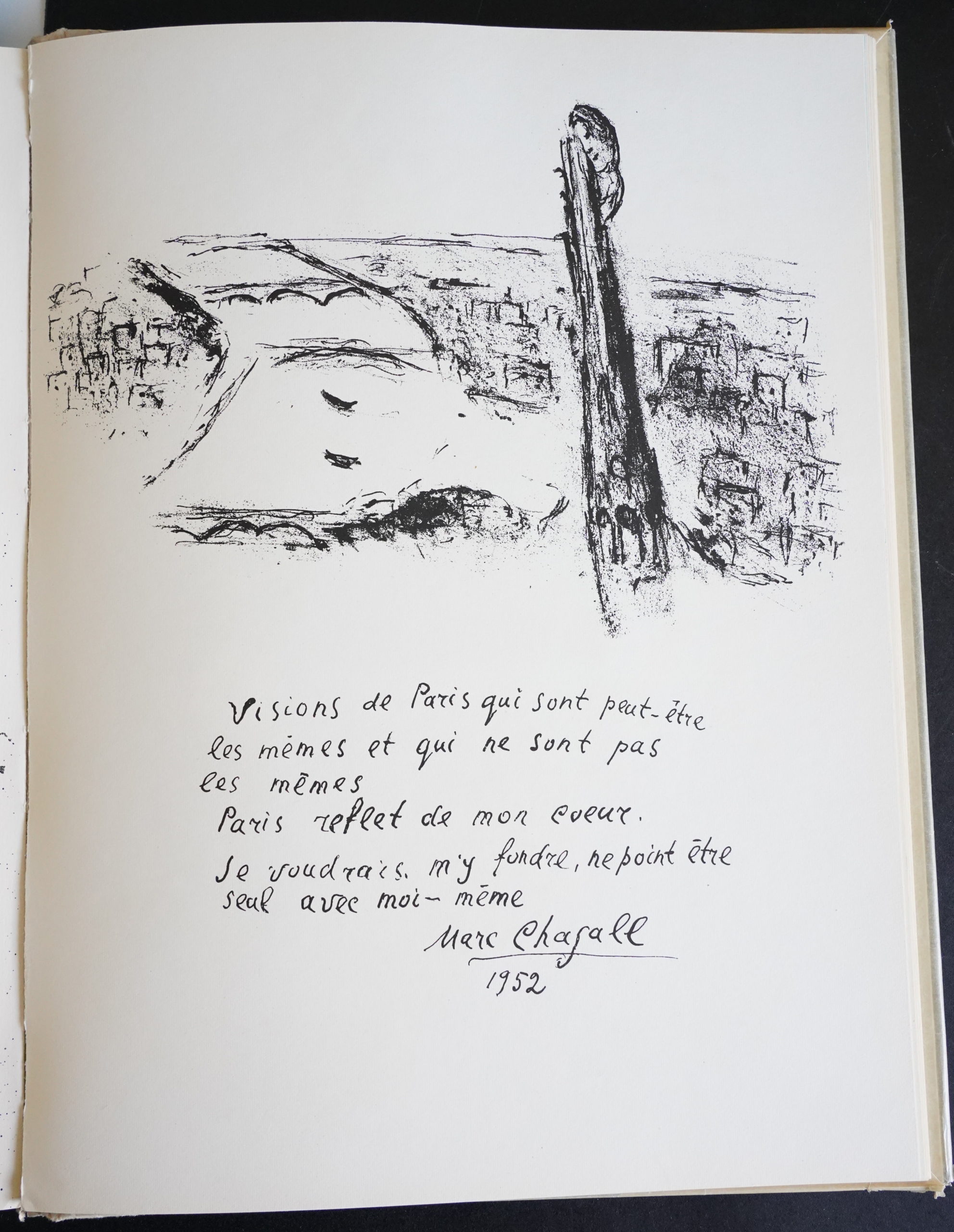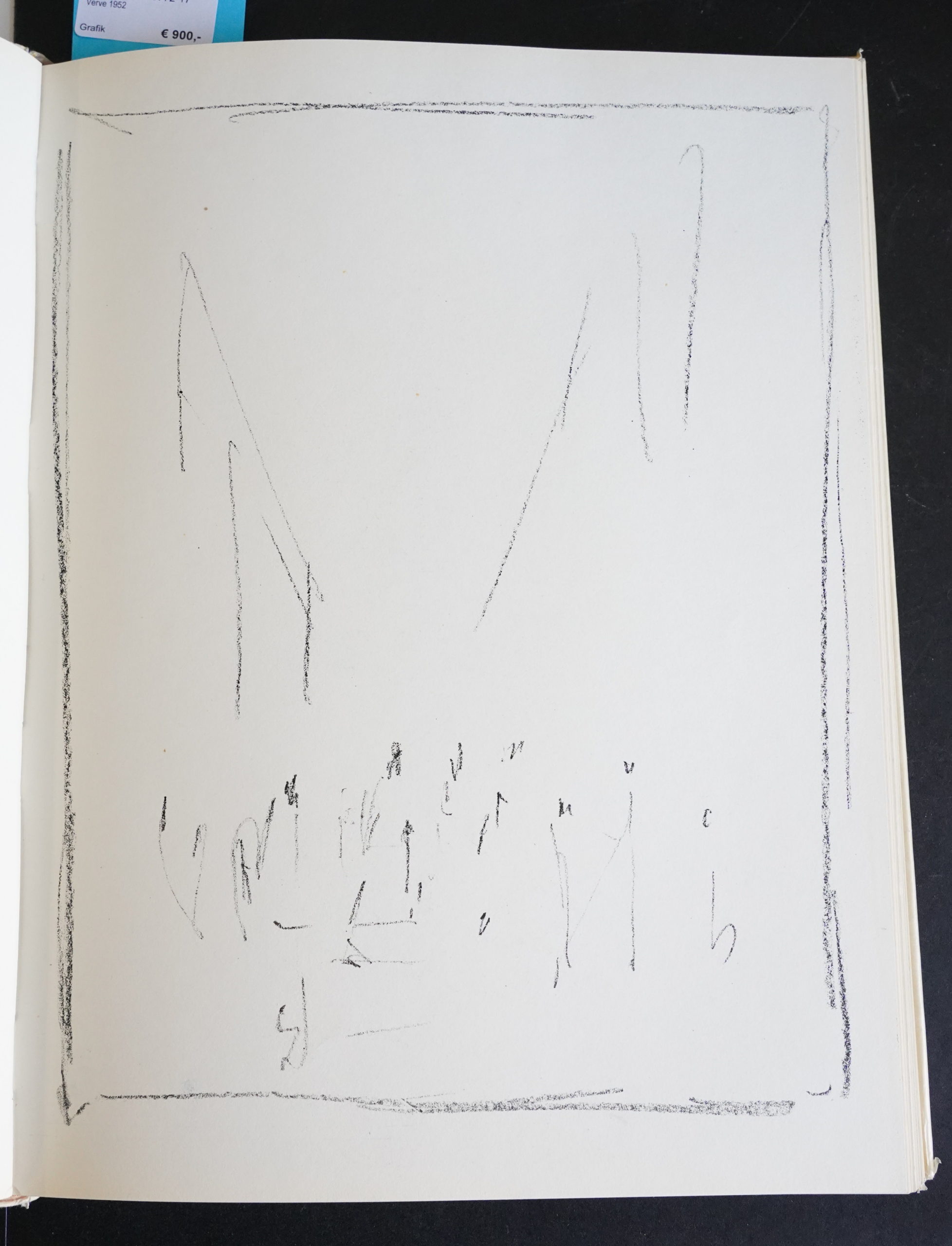 Verve 1952 1952. Vol. VII, Nr. 27 und 28. Mit diversen Original-Lithographien verschiedener Künstler. Unter anderem 8 teils farbigen Lithographien von Chagal aus der Reihe Vision de Paris, sowie diversen von Henri Matisse, George Braque, Alberto Giacometti, Fernand Léger, Mirò, Henri Laurens, André Masson. Größe ca. 36 x 27 cm. Schutzumschlag teils eingerissen, darunter Einband leicht gebräunt. Siehe Chagall. Die Lithographien, hg. v. Gauss. Nr. 80-87. 1952. vol. VII, no. 27 and 28. with various original lithographs by different artists. Among others 8 sometimes coloured lithographs by Chagal from his Vision de Paris, as well as various ones by Henri Matisse, George Braque, Alberto Giacometti, Fernand Léger, Mirò, Henri Laurens, André Masson. Size approx. 36 x 27 cm. Dust jacket partly torn, underneath cover slightly browned. See Chagall. The Lithographs, ed. by Gauss. No. 80-87.