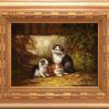 Koch, Samuel 1912 Schleswig. Drei Kätzchen. Öl auf Holz. Unten rechts signiert, verso bezeichnet. Größe ca. 18 x 24 cm, Rahmen ca. 28,5 x 34,5 cm.