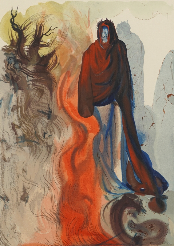Dali, Salvador 1904 Figueres - 1989 ebd. Nach. Die Erscheinung des Dis. Aus dem Zyklus Illustrationen zu Dantes Göttlichen Komödie, Hölle, 34. Gesang. Farbholzschnitt. Unten mittig signiert. Edition Les Heures Claires, Paris, Auflage ca. 4800, davon 800 handsigniert. Größe ca. 24,5 x 18 cm, hinter Passepartout und Glas gerahmt ca. 62,5 x 56 cm. Anbei Zertifikat von Günther J. Keilich, Sachverständiger für europäische Kunst des 19. und 20. Jahrhunderts. Siehe Löpsinger Nr. 1072. 1904 Figueres - 1989 ibid. After. The apparition of Dis. From the cycle Illustrations to Dante's Divine Comedy, Hell, 34th canto. Colored woodcut. Signed at the bottom center. Edition Les Heures Claires, Paris, edition ca. 4800, of which 800 signed by hand. Size approx. 24.5 x 18 cm, framed behind mount and glass approx. 62.5 x 56 cm. Enclosed certificate of Günther J. Keilich, expert for European art of the 19th and 20th century. See Löpsinger No. 1072.