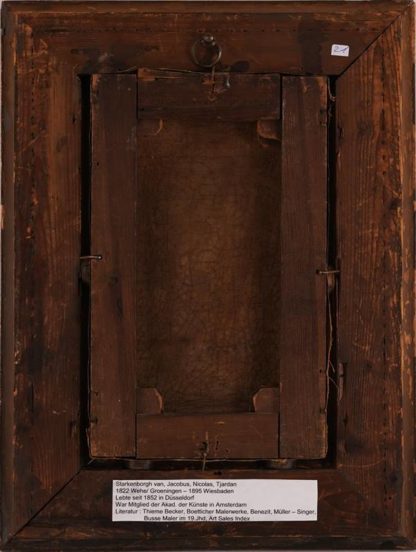 1822 Wehe - 1895 Wiesbaden. Öl auf Leinwand. Zwei Wäscherinnen in einer idyllischen Landschaft. Signatur unten links. Verso Künstlerstempel auf Keil- und Bilderrahmen sowie Sammleretikett. Größe ca. 21 x 16,5 cm, Rahmen ca. 39 x 29 cm. Craquelé.