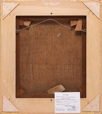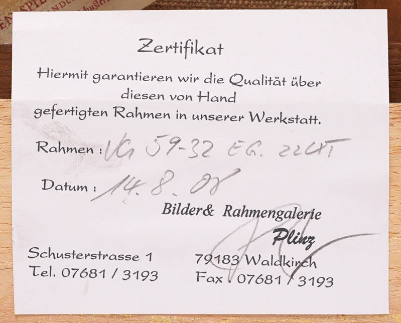 Deutsch/Frankreich um 1800. Blick auf einen Wasserfall umgeben von imposanten Felsenformationen mit einer Figurenstaffage von zwei Soldaten. Öl auf Leinwand. Unten links monogrammiert TG (?). Größe ca. 37 x 32 cm, Rahmen ca. 44 x 40 cm. Leinwand dubliert, teils Craquelé.