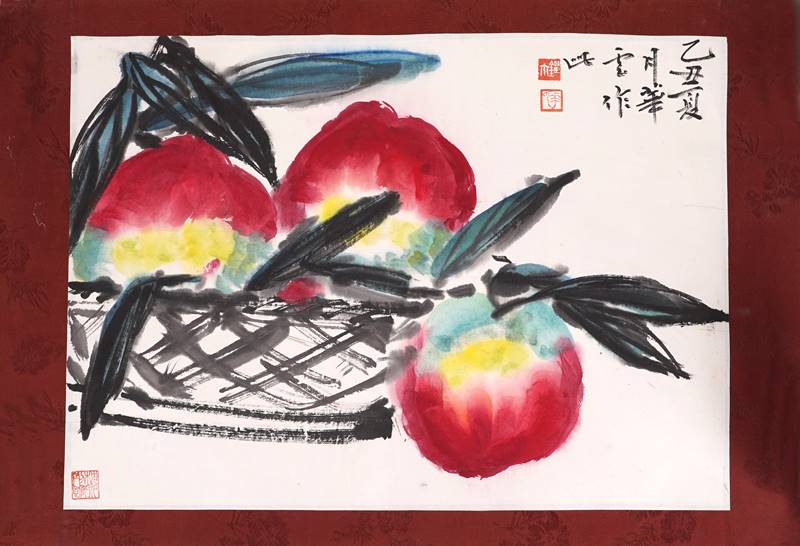 Zwei chinesische Bilder 1 x Liu Hua-Yun, Stillleben, Aquarell auf Papier auf Stoff, verso bezeichnet und gewidmet.1 x Tuschzeichnung auf Papier auf Stoff. Maximale Größe ca. 41 x 59 cm. Gerollt.