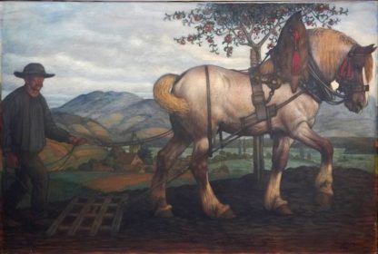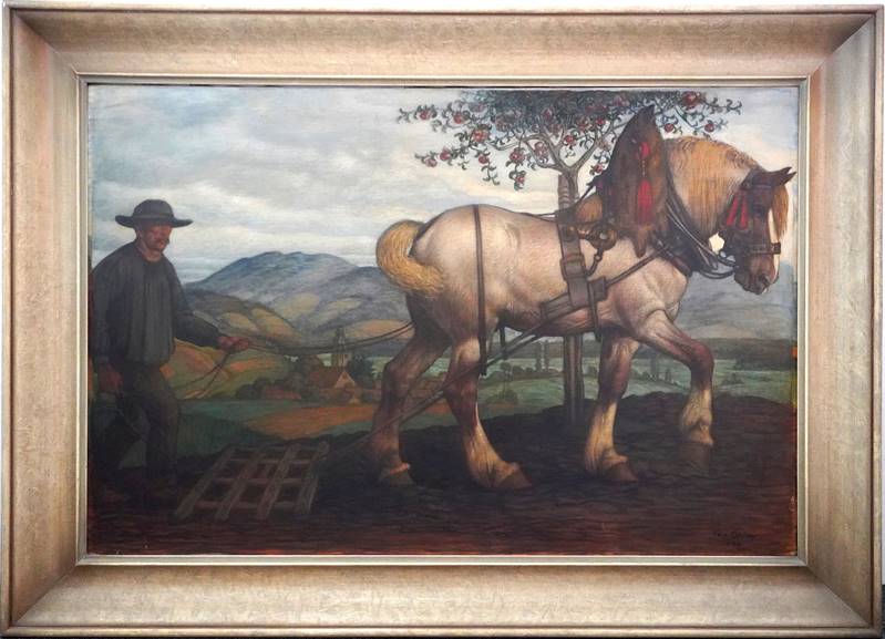 Deutsch, 1892-1966. Beim Pflügen, 1924. Öl auf Leinwand. Unten rechts signiert und datiert 1924. Größe ca. 86 x 130 cm, Rahmen ca. 112 x 155 cm. Teils Craquelé, teils leicht verschmutzt, teils kleinste Dellen in der Leinwand. Aufgrund des großen Formats ist kein Versand möglich. Gerne empfehlen wir ihnen eine Spedition.