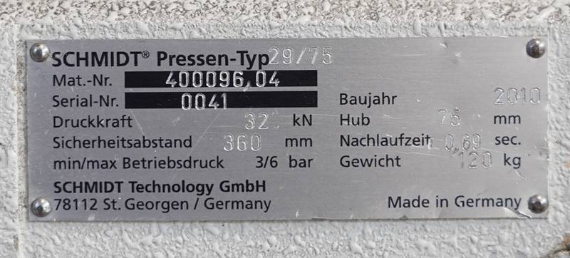 Montagepresse Schmidt Tecnology. 29-75. Bj. 2010. Druckkraft 32 KN. Auf Tisch.