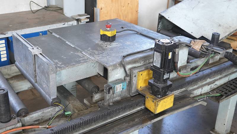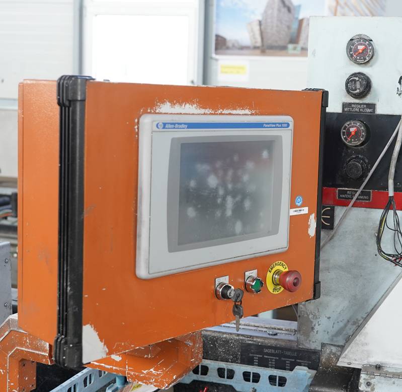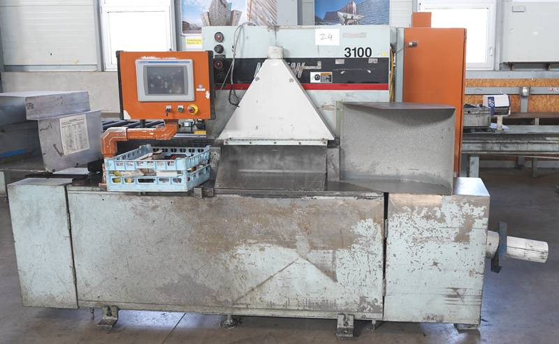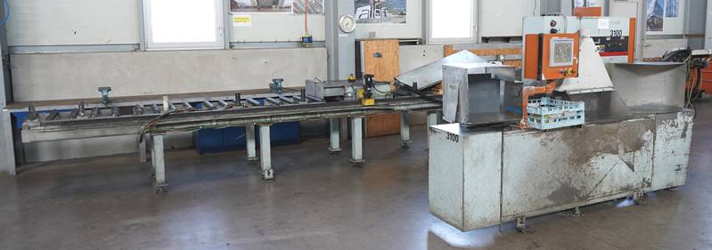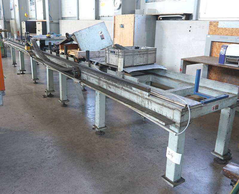 Sägemaschine Metlsaw CS2-T8-24. Säge mit langem Förderband, ca. 7 m.