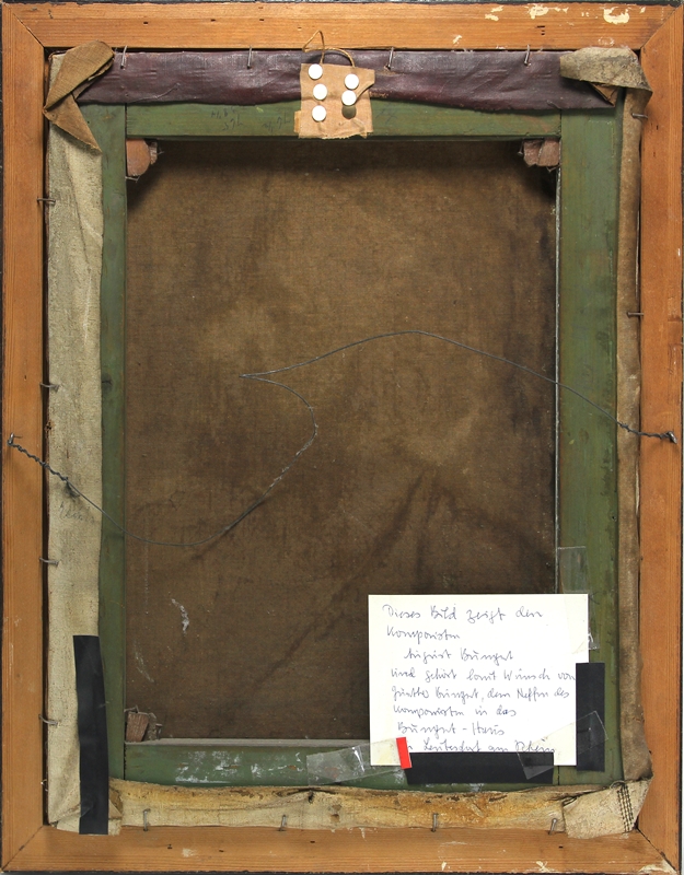 Quittner, Rudolf 1872 Troppau -1910 Neuilly-sur-Seine. Portrait des Komponisten August Bungert. Unten links signiert, verso bezeichnet. Öl auf Leinwand. Größe ca. 48 x 39 cm, Rahmen ca. 55 x 48 cm. Teils etwas Farbverlust.