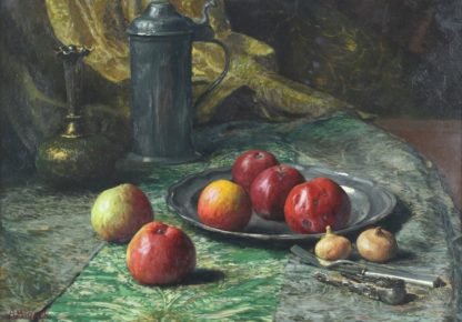 Blunck, August 1858 Altona - 1946 Berlin. Stillleben mit Äpfeln. Öl auf Platte. Unten links signiert. Größe ca. 41 x 58 cm, Rahmen ca. 47 x 64 cm. Minimaler Farbverlust unten rechts.