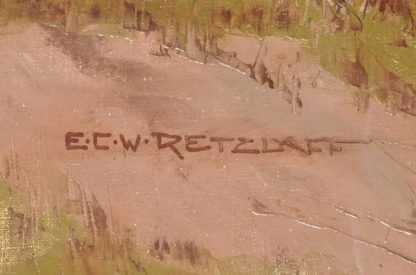 Retzlaff, Ernst Carl Walter 1898 Berlin - 1976 Detmold. Alpenlandschaft. Öl auf Leinwand. Unten links signiert. Größe ca. 70 x 80 cm, Rahmen ca. 89 x 99 cm. Teils mit starkem Craquelé.