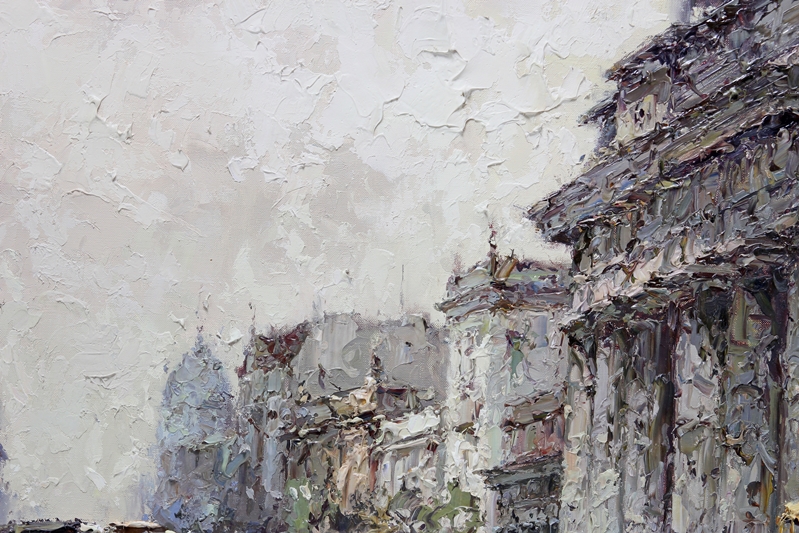 Postimpressionist Deutsch 20. Jh. Brandenburger Tor und Berliner Dom in pastös aufgetragener Farbe. Öl auf Leinwand. Unten rechts und verso unleserlich signiert, verso bezeichnet. Größe ca.60 x 90 cm, Rahmen ca. 79 x 108 cm. Guter Zustand.