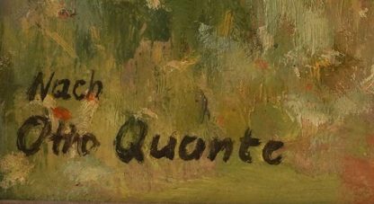 Weckbrod, Richard 1885-?. Die Sorglosen nach Otto Quante. Öl auf Platte. Unten rechts signiert, unten links bezeichnet. Größe ca. 66 x 54 cm, Rahmen ca. 72 x 59 cm.