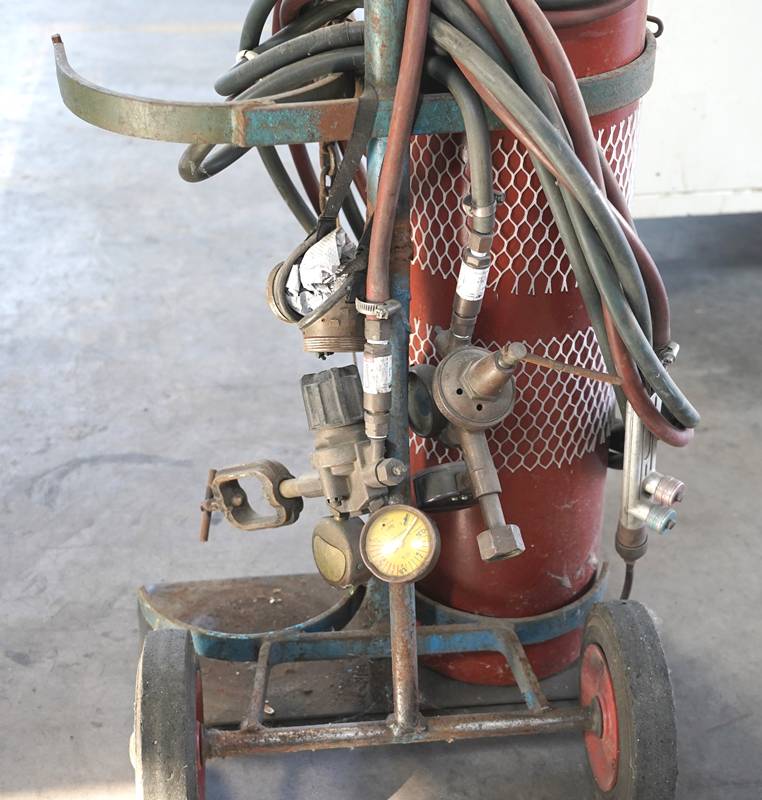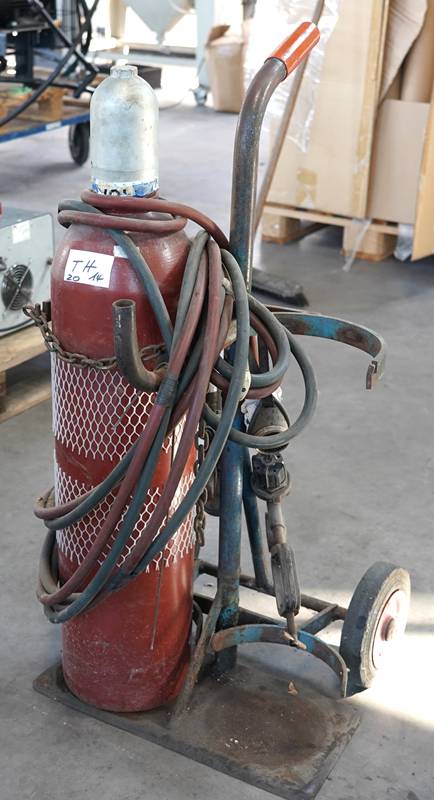 Flaschenwagen mit Schlauch und Brenner.
