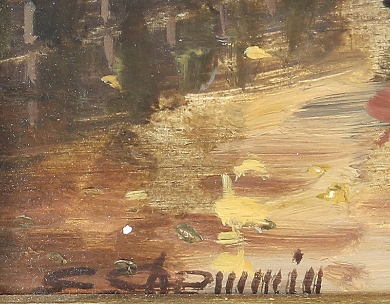 Demmin, Erich 1911 Ivenack - 1997 Berlin. Amsterdam. Öl auf Holz. Unten links signiert. Größe ca. 23 x 26,5 cm, Rahmen ca. 33 x 37 cm. Guter Zustand.