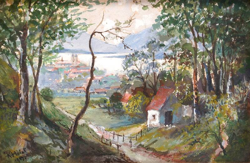 Hölzl, K. Bayrischer Landschafter. Drei Aquarelle. Diverse Landschaftsdarstellungen wohl im Chiemgau. Jeweils signiert und datiert 1907-1909. Jeweils hinter Glas, teils Passepartout, gerahmt. Größter Rahmen ca. 34 x 42 cm.