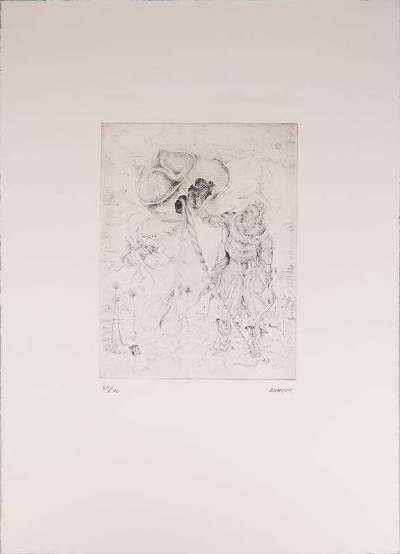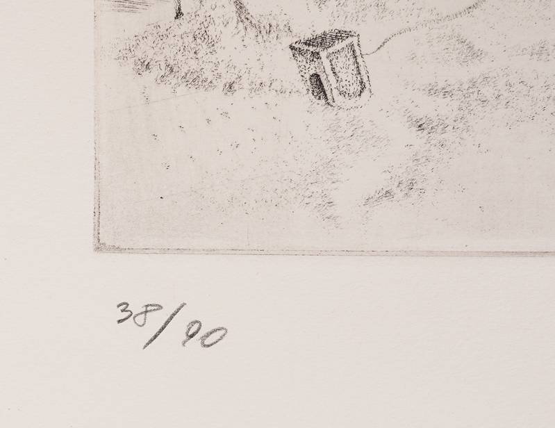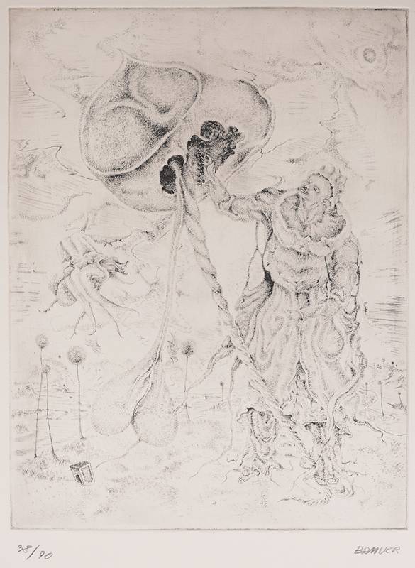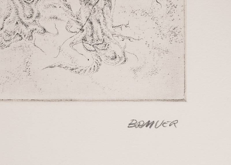 1929 Wien - 2021 ebd. "Der Mann mit dem Spielzeug", 1966. Radierung. Unten rechts mit Bleistift signiert "BRAUER", links nummeriert 38/90. In einem Passepartout eingesteckt. Plattengröße ca. 35 x 26,8 cm, Blattgröße ca. 75 x 54 cm, Passepartout ca. 92 x 72 cm.