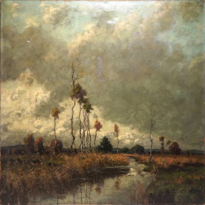 Schaette, Karl 1884 Korbach/Waldeck - 1951 München. Sumpflandschaft wohl im Dachauer Moos unter wolkenverhangenem Himmel. Unten links signiert. Größe ca. 80 x 80 cm. Leinwand teils beschädigt, teils ausgebessert.
