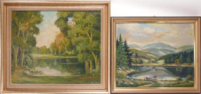 Burkard Deutsch frühes 20. Jh. Zwei Landschaftsgemälde. Je Öl auf Platte. Je unten rechts Burkard signiert, verso Rügner bezeichnet. Größe des größeren Bildes ca. 40 x 48 cm, Rahmen ca. 50 x 58 cm.