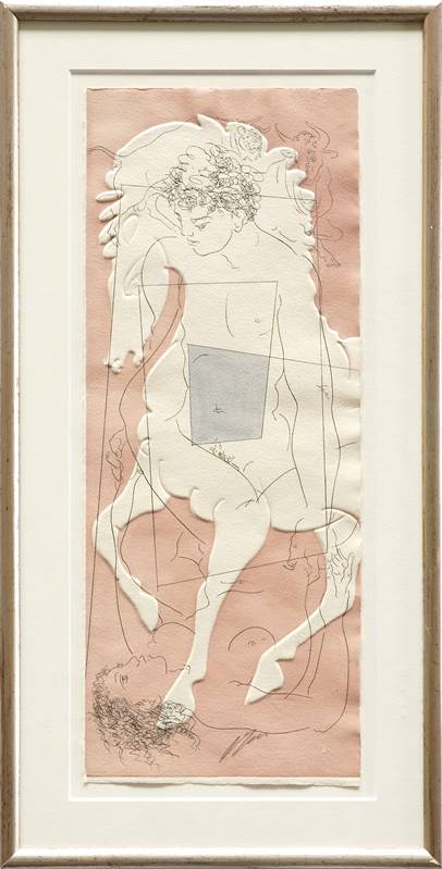 1909 Luzern - 2015 ebd. Liebespaar und Pferd. Wohl Radierung und Prägedruck. Unten mittig handsigniert, verso bezeichnet. Blattgröße ca. 48 x 19 cm, hinter Passepartout und Glas gerahmt ca. 60 x 31 cm.
