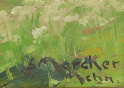 Mercker, Erich 1891 Zabern - 1973 München. Blick auf eine Ortschaft, im Hintergrund die Alpen. Öl auf Platte. Unten rechts signiert. Größe ca. 40 x 50 cm, Rahmen ca. 47 x 57 cm. Guter Zustand.