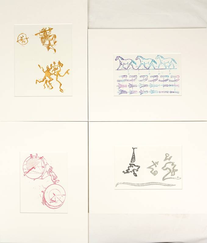 1891 Brühl - 1976 Paris. Vier Farblithografien zu Lewis Carrolls "Wunderhorn". Edition Manus Presse, Stuttgart 1970. Jeweils in einem Passepartout montiert, ungeöffnet. Max. Bildgröße ca. 21,5 x 18 cm, Größe der Passepartouts je ca. 40 x 30 cm.