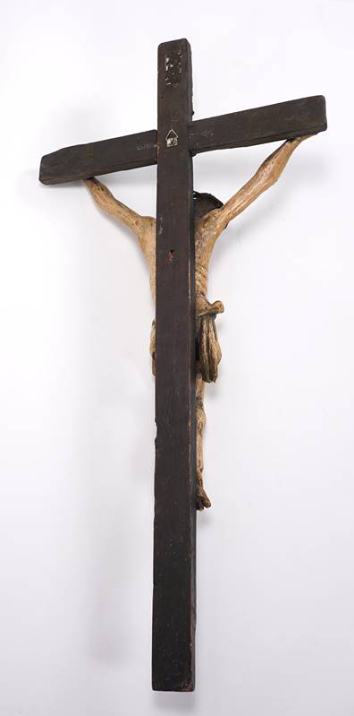 Corpus Christi Barock. Holz, polychrom gefasst. Größe ca. 81 x 40 cm. Fassung übergangen. Teils bestoßen.