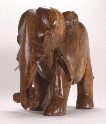 Figur Elefant Ghana. Holz, geschnitzt. Größe ca. 19 x 36 cm, Höhe ca. 33 cm, Gewicht ca. 5,2 kg. Am rechten Vorderlauf best., teils leicht berieben und best. Zustand wie abgebildet. Provenienz: süddeutsche Privatsammlung.