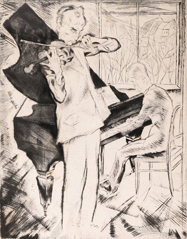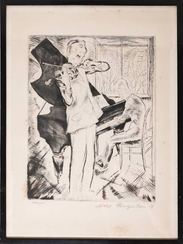1884 Butschkowitz - 1943 Cerisano. "adagio". Radierung. Unten links betitelt, unten rechts handsigniert und datiert (19)18. Druckgröße ca. 28,5 x 22,5 cm, hinter Glas gerahmt ca. 42 x 32 cm. Teils fleckig.