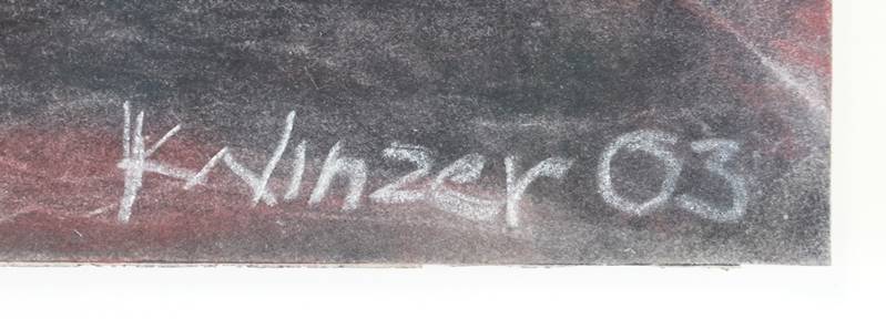 Winzer, Konrad *1955 Lörrach. Totenstille III. Pastellkreide auf Papier. Unten rechts signiert und datier (20)03. Größe ca. 35,5 x 48 cm, hinter Glas gerahmt ca. 45 x 57 cm. Winzer studierte an der Staatlichen Akademie der Bildenden Künste in Stuttgart bei Prof. Seemann und Prof. Hrdlicka. Er lebt als freischaffender Künstler in Kandern. Aus einer umfangreichen Markgräfler Kunstsammlung. Erwerbsjahr 2003, ehemaliger Kaufpreis 2621,50 €.