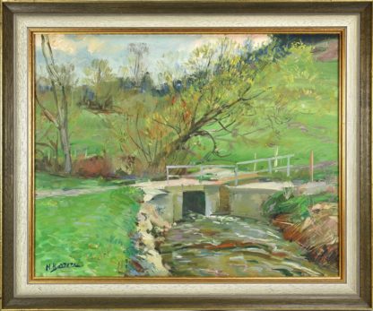 Barrera, Nicolai 1919 Tschernigow, Ukraine - 2006 Weil am Rhein. Unterer Mühlbach Trossingen. Öl auf Leinwand. Unten links signiert, verso betitelt. Größe ca. 40 x 50 cm, Rahmen ca. 49 x 59 cm. Guter Zustand.